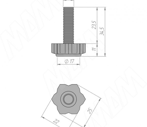 Подпятник регулир., под ключ М8х25, черная + гайка М8