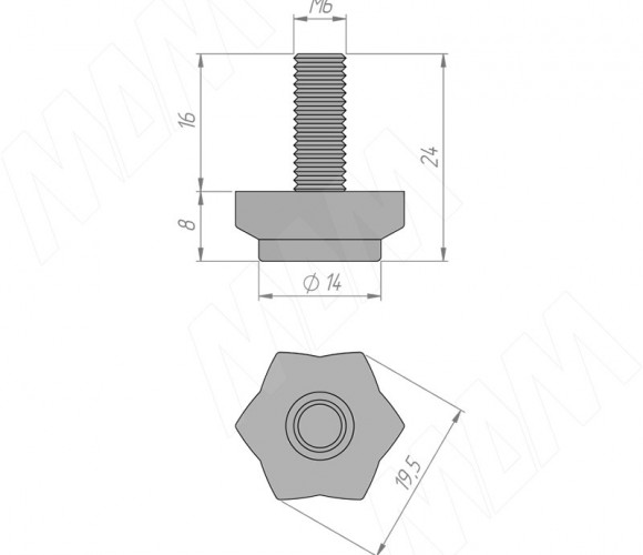 Подпятник регулир. под ключ М6х18 Черный + Гайка М6