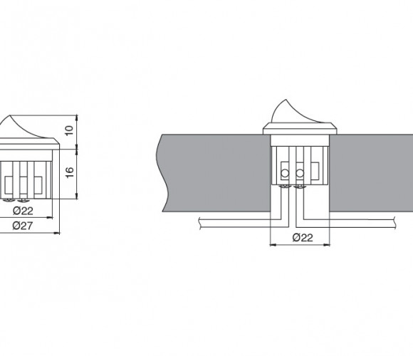 BH300 — это выключатель клавишного типа, предназначенный для включения и выключения светильников. Он размещается между светильником или источником питания и вилкой. Провода фиксируются с помощью предустановленных винтов. Выключатель устанавливается в отверстие Ø22 мм.