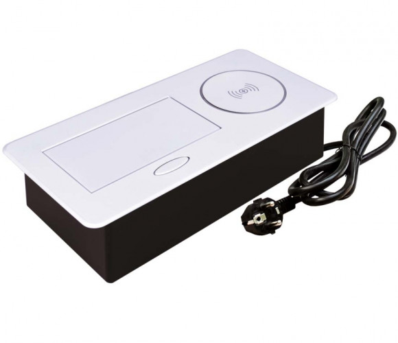 Некоторые модели выдвижных розеток способны на нечто большее. Встраиваемый настольный удлинитель SETE (артикул SBT-1UCW) оснащен одним евро гнездом, 2 USB разъемами и модулем беспроводной зарядки для мобильных устройств.