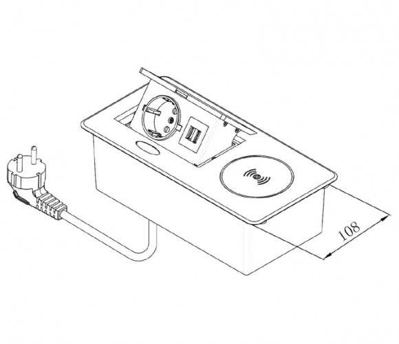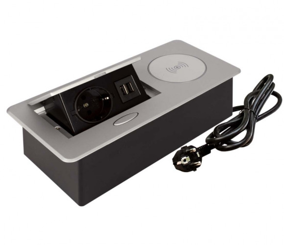 Удлинитель встраиваемый настольный, 1 гнездо, 2*USB, беспроводная зарядка, серый SETE SBT-1UCW-80
