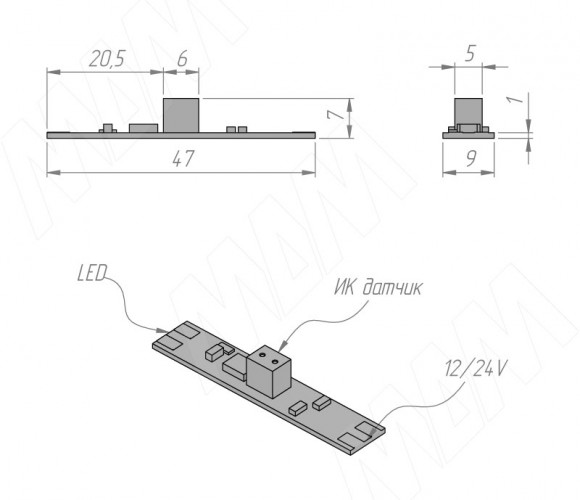Применение: выключатель устанавливается в профиль для включения/выключения светодиодной ленты