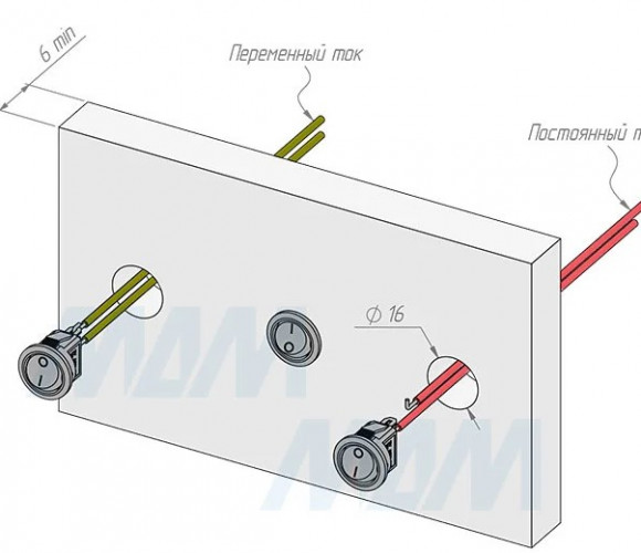 Установка и подключения: подготовить установочное отверстие ∅16 мм.