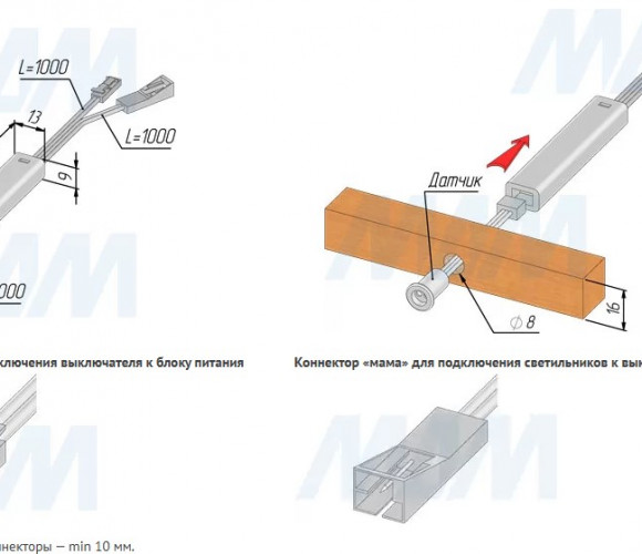 Применение: инфракрасный выключатель «на преграду» используется для реализации подсветки внутри шкафов, гардеробных, корпусов верхнего яруса, выдвижных ящиков и т.д.