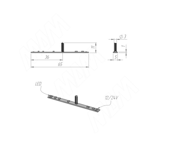 Сверхтонкий выключатель для установки в профиль для светодиодных лент шириной 5 мм.