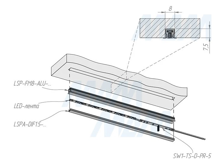 Способ установки: устанавливается непосредственно в алюминиевый профиль под светорассеивающий экран