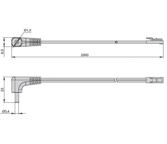 Кабель соединительный 2000 мм для Led Linear/Led Linear Touch с разъемом JACK «папа» (угловой 90°) МММ.011.018/011.023