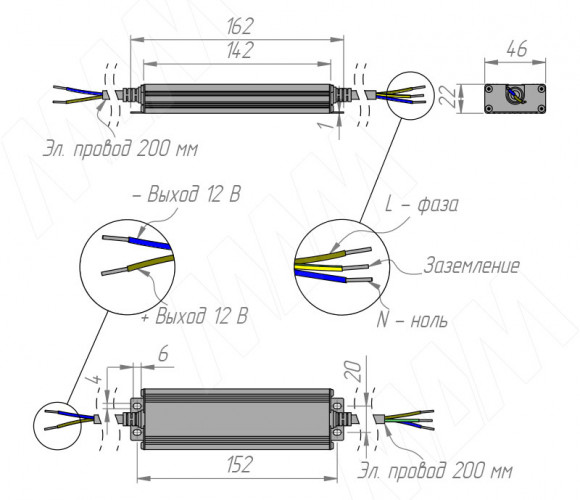 Применение: для подключения светодиодной ленты и других светодиодных источников с рабочим напряжением 12 В к сети 220 В