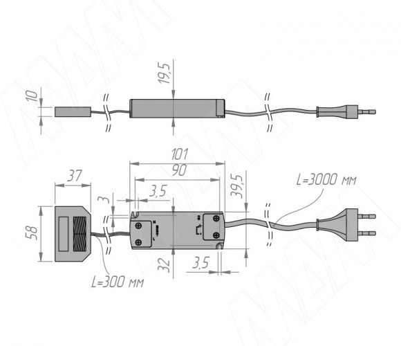 • блок оборудован разветвителем на 6 розеток, тип LED, и шнуром питания.