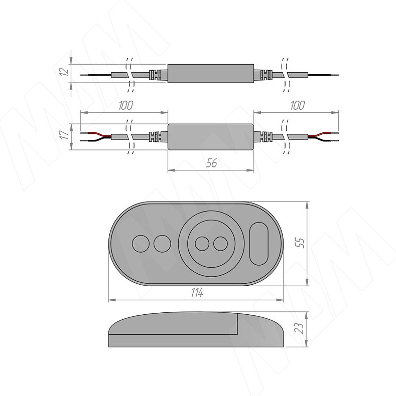 Миниатюрный диммер (контроллер) с радио-пультом ДУ для управления монохромными светодиодными лентами.