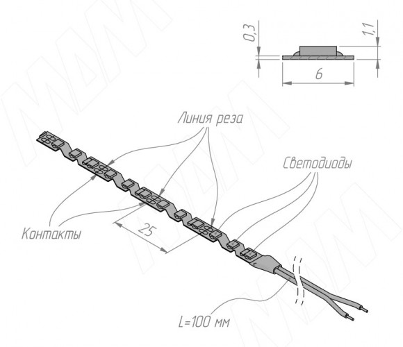– рекомендуется устанавливать светодиодную ленту в алюминиевый профиль с рассеивателем; алюминиевый профиль является хорошим теплоотводом для ленты, а рассеиватель защищает ленту от механических повреждений;