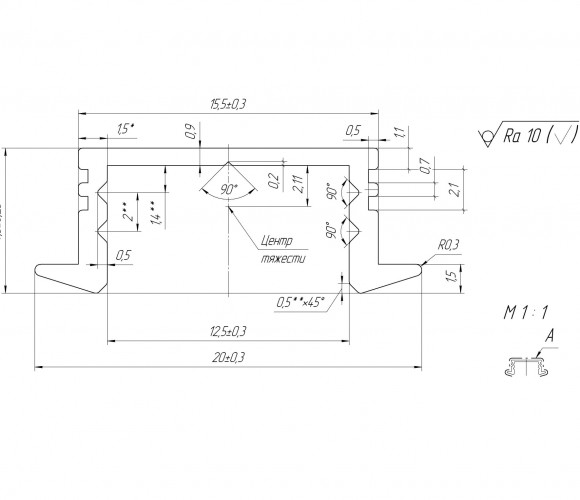 Профиль накладной под светодиодную ленту + рассеиватель + комплект заглушек