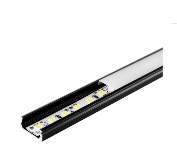 Накладной алюминиевый профиль в комплекте с матовым экраном и аксессуарами, для светодиодных лент шириной до 10мм. Цвет - черный. Габаритные размеры 15х6х2000мм.
