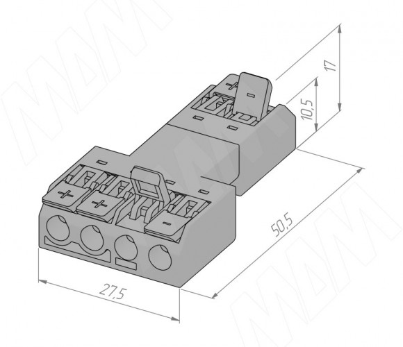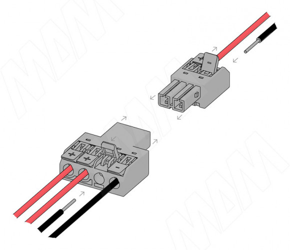 • в корпусе клеммы две независимые линии, поэтому с помощью коннектора можно соединять сразу два провода с разными зарядами (L и N, + и –);