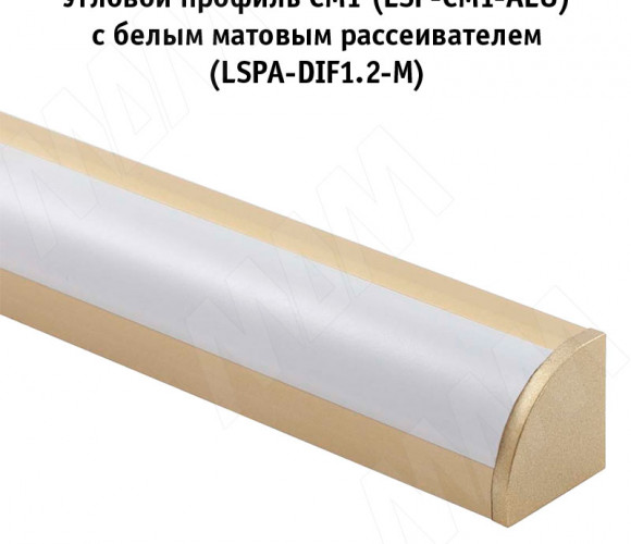 Профиль под свет. ленту СМ1 угловой, золото матовое, 16х16мм,L-3000 LSP-CM1-ALU-3-GL, (без рассеивателя)
