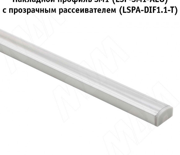 Профиль SМ1 накладной, серебро, под свет. ленту, 16х7,5мм,L-3000 LSP-SM1-ALU-3-AL, (без рассеивателя)
