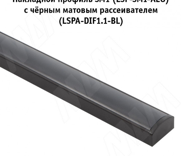 Профиль SМ1 накладной, черный, под св. ленту, 16х7,5мм,L-3000 LSP-SM1-ALU-3-BL, (без рассеивателя)