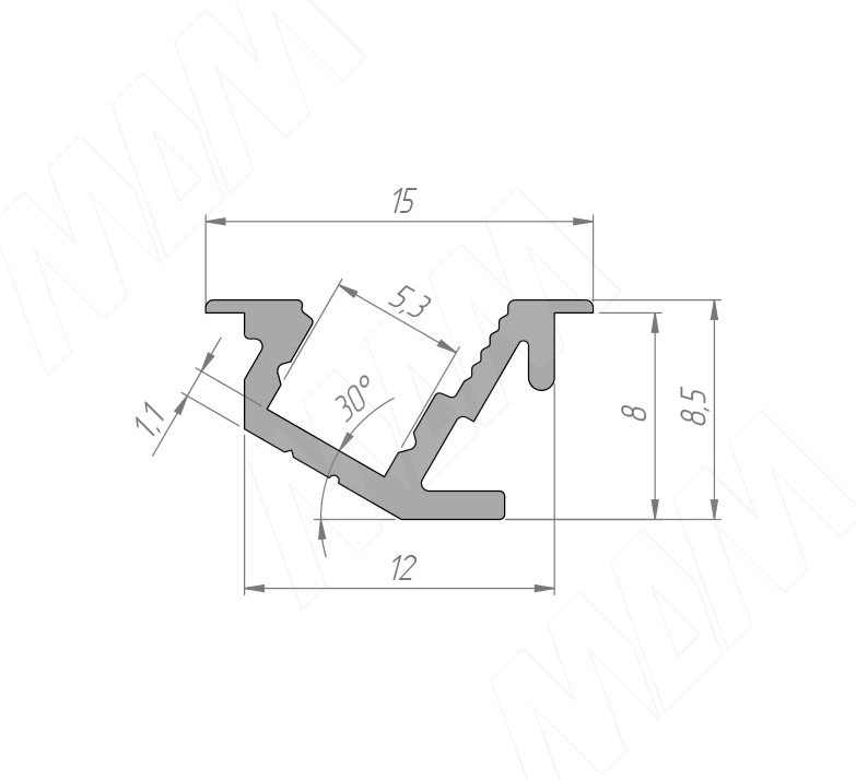 Профиль FМ10 врезной угловой узкий, для ленты с основ. 5мм. белый мат,15х8,5мм L-3000 LSP-FM10-ALU-3000-WHM (без рассеивателя)