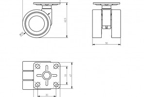 Опора колесная с фланцем, CALIBRO, D50мм без тормоза, черное   KM-CALIBRO-50мм-BH-20