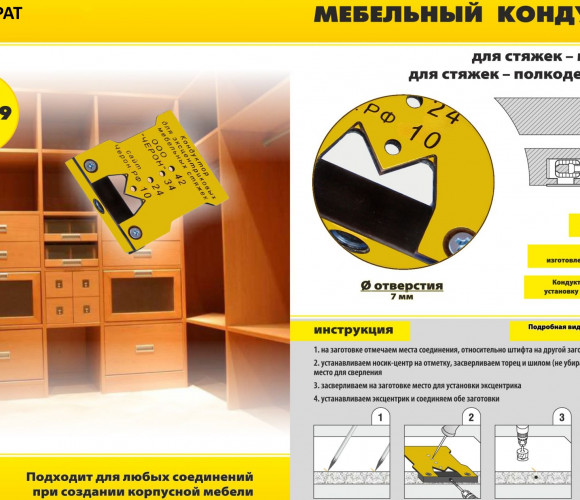 Мебельный кондуктор для эксцентриковых стяжек (минификс), стяжек-полкодержателей МК-09