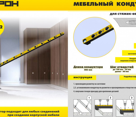 - Мебельный кондуктор кондуктор МК-02 предназначен для сверления отверстий 7 мм в торце плиты 16 мм с шагом отверстий 25/50 мм. (можно сверлить плиты и другой толщины с использованием переходников)