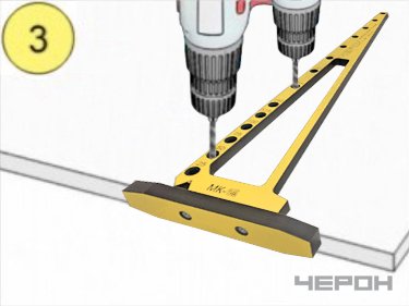 - Кондуктор применим для установки полкодержателей и штоков эксцентриоквых стяжек, а так же мебельных направляющих.