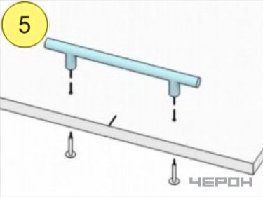 - Для разметки нужно отметить центр ручки на дверце и спозиционировать по среднему носику.
