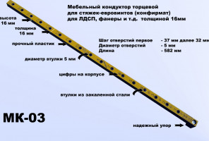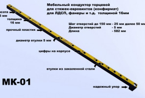 Мебельный кондуктор для эксцентриковых стяжек (минификс), стяжек-полкодержателей МК-09