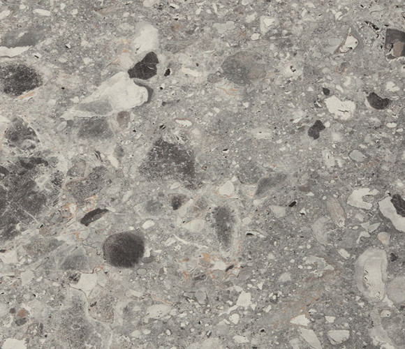 Имитации терраццо в качестве ретро-элементов снова используются в дизайне интерьеров. Терраццо Триест серый – это выразительный декор с несколько бóльшим масштабом рисунка, который за счёт своих серых оттенков очень хорошо подходит к поверхностям как в актуальных серых однотонных декорах, так и к древесным репродукциям, таким как Орех или светлый Каштан. Структура ST75 Минеральный сатин придаёт декору на ощупь бархатистость, а на вид естественную неравномерность рельефа.