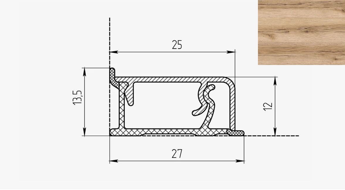 Плинтус КВАДРО Д FS2020/2 W1 Дуб Бильбао светлый 27*13*4200мм