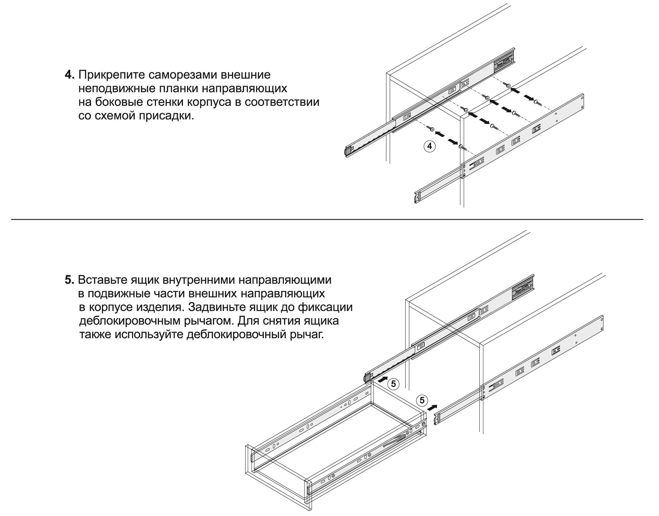 Направляющие представлены в размерной линейке от 300 до 500 мм. DB4518 обеспечивают полное выдвижение с 400 мм.